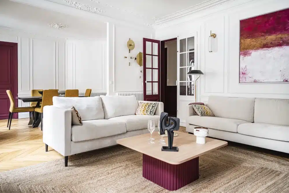 - Optimisation d’espace : Valorisation des volumes originaux, des moulures et des boiseries sans surcharge.